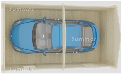 PICTURE: A 10' x 18' (3x5.4m) single log garage with a saloon car inside, viewed from above.