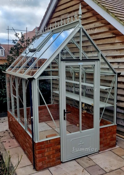 THIS PREMIUM QUALITY GREENHOUSE: These high quality premium greenhouses are not only stronger than basic greenhouses but also taller and more comfortable with easy access and ample ventilation. This quality greenhouse includes toughened safety glass throughout, large pane glazing, extra eaves height and lockable doors with low thresholds for easy access. The box section aluminium frame provides additional strength and rigidity. Other standard features include free gutters with downpipes and stop ends and PVC bar capping to provide an attractive finish. The sophisticated design features concealed fixings and weatherproof doors and roof vents. Options include ornate ridge crests and attractive built in aluminium staging and shelving.