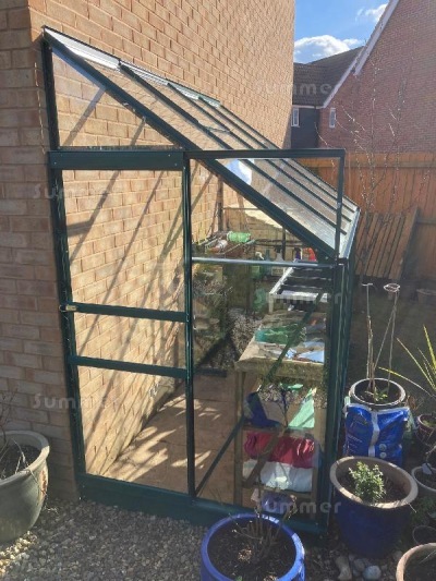 TIPS IF HEIGHT IS RESTRICTED: If the height of the host wall is limited it is important to check the height available against the external ridge height of the lean to. The lean to ridge is the highest part of the roof, at the rear. At sites where the wall height is restricted it may be possible to excavate the base area in order to reduce the ground level. This is not always practical at every site as it depends on the surfaces and the ground levels. Be careful to ensure that the greenhouse door opening is unobstructed. If there are doors or windows in the host wall which are enclosed within the lean to you should also be careful to ensure that these can be opened freely.